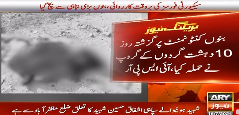 سیکیورٹی فورسز نے بنوں کنٹونمنٹ پر دہشتگردوں کا حملہ بروقت کارروائی کرتے ہوئے ناکام بنا کر شہر کو بڑی تباہی سے بچا لیا۔