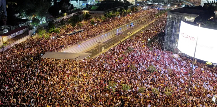 تل ابیب: غزہ میں قید یرغمالیوں کو واپس لانے میں ناکامی پر مشتعل اسرائیلیوں نے نیتن یاہو کے خلاف اب تک کا سب سے بڑا احتجاجی مظاہرہ کیا، جس میں ایک اندازے کے مطابق 750,000 شہری شریک ہوئے۔