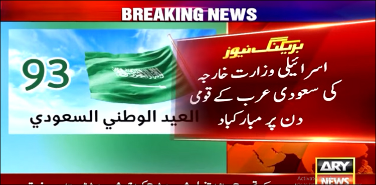 عرب نیوز کے مطابق اسرائیل نے ہفتے کے روز سعودی عرب کو اس کے قومی دن کے موقع پر مبارک باد دینے والی ایک پوسٹ شیئر کی ہے۔
