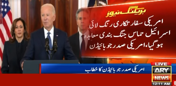 امریکی صدر جوبائیڈن نے کہا ہے کہ امریکی سفارتکاری رنگ لائی اور اسرائیل حماس جنگ بندی معاہدہ ہوگیا۔