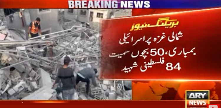 شمالی غزہ پر اسرائیلی بمباری، 50 بچوں سمیت 84 فلسطینی شہید