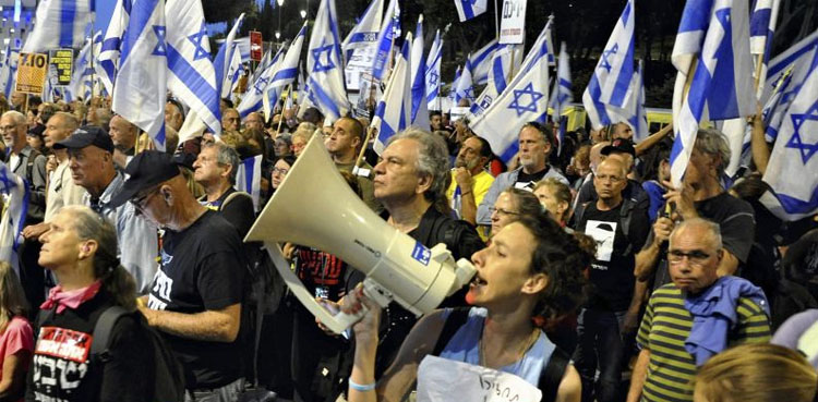 اسرائیل میں نیتن یاہو حکومت کے خلاف ہزاروں افراد سڑکوں پر نکل آئے اور احتجاج کرتے ہوئے تل ابیب کی مرکزی شاہراہ اور مختلف سڑکوں کو بند کردیا۔