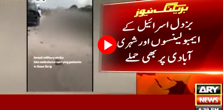 غزہ میں مریضوں کو لے جاتی ایمبولینس پر میزائل مارا گیا جب کہ شہری علاقوں میں گھروں پر بھی بمباری کی جارہی ہے۔