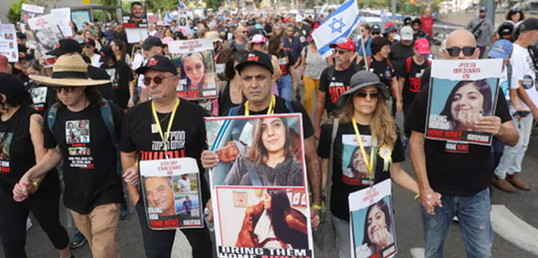 مظاہرین کا کہنا تھا کہ ہم 105 دن سے التجائیں کر رہے ہیں اور حکومت سے مطالبہ کرتے ہیں کہ وہ یرغمالیوں کی رہائی کے لیے جراتمندانہ اقدامات کرے۔