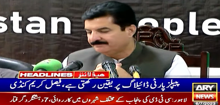 پیپلزپارٹی کے ترجمان فیصل کریم کنڈی کا سوال کرتے ہوئے کہنا تھا کہ کیا پیپلز پارٹی نے علیم خان سے سیٹ ایڈجسٹمنٹ کی بات کی؟ پیپلز پارٹی ڈائیلاگ پر یقین رکھتی ہے، انھوں نے کہا کہ کے پی اور پنجاب حکومت ٹرانسفر پوسٹنگ تک کررہی ہیں۔