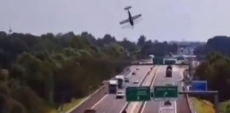 اٹلی میں چھوٹا طیارہ موٹروے پر گر کر تباہ ہوگیا جس کی ویڈیو منظرعام پر آگئی۔
