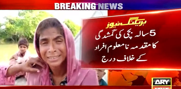 جعفر آباد: بلوچستان کے ضلع جعفرآباد سے مبینہ اغوا ہونے والی سیلاب متاثرین کی پانچ سالہ بچی نہ ملی، پولیس نے نامعلوم افراد کے خلاف مقدمہ درج کرلیا۔