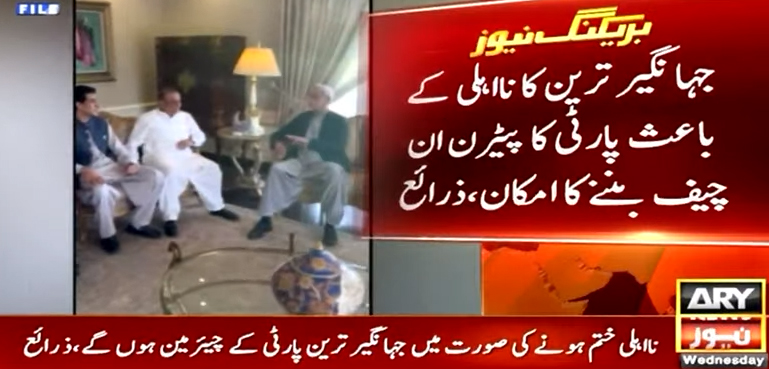 ذرائع نے بتایا کہ جہانگیر ترین جو عدالت کی جانب سے نا اہل قرار دیے گئے ہیں نا اہلی کے باعث ان کے پارٹی کا پیٹرن ان چیف بننے کا امکان ہے جب کہ نا اہلی ختم ہونے کی صورت میں وہ پارٹی کے چیئرمین ہوں گے۔