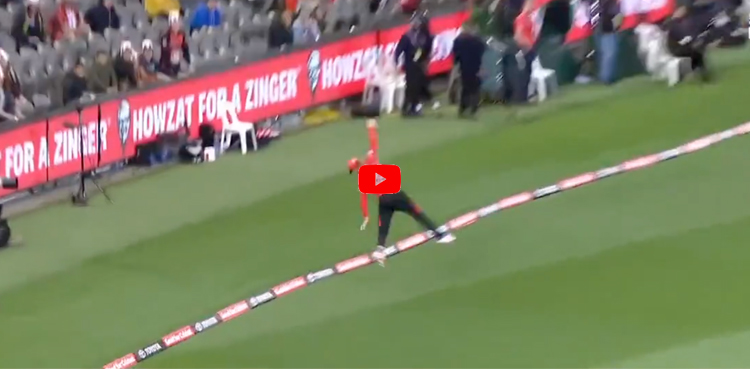 بگ بیش لیگ میں میلبرن رینی گیڈز کے جیک فریسر نے باؤنڈری پر ناقابل یقین کیچ لےکر سب کو ورطہ حیرت میں ڈال دیا، ویڈیو سوشل میڈیا پر وائرل ہوگئی۔