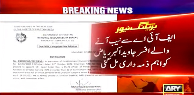 ایف آئی اے سے نیب آنے والے افسر جاوید اکبر ریاض کو اہم ذمہ داری مل گئی