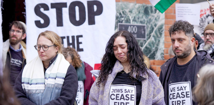 بین الاقوامی خبر رساں ادارے کی رپورٹ کے مطابق مظاہرین کی جانب سے فلسطینیوں کے خلاف تشدد روکنے اور جنگ بندی کا مطالبہ کیا گیا۔