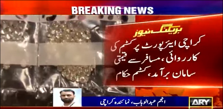 کسٹمز حکام کا کہنا ہے کہ گرفتار مسافر کی نشاندہی پر فلائٹ میں موجود ساتھی کو بھی گرفتار کرلیا گیا۔