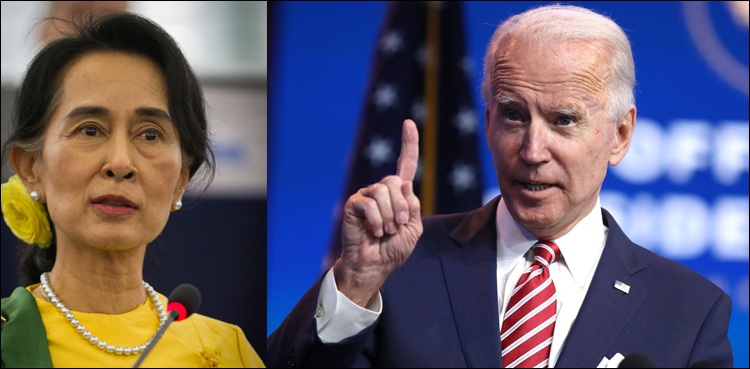 بین الاقوامی میڈیا رپورٹ کے مطابق امریکی صدر جوبائیڈن نے جنوب مشرق میں واقع ایشیائی ملک میانمار میں اقتدار پر فوجی قبضے اور برسراقتدار جماعت کی رہنما آنگ سان سوچی کی گرفتاری کی شدید الفاظ میں مذمت کی۔