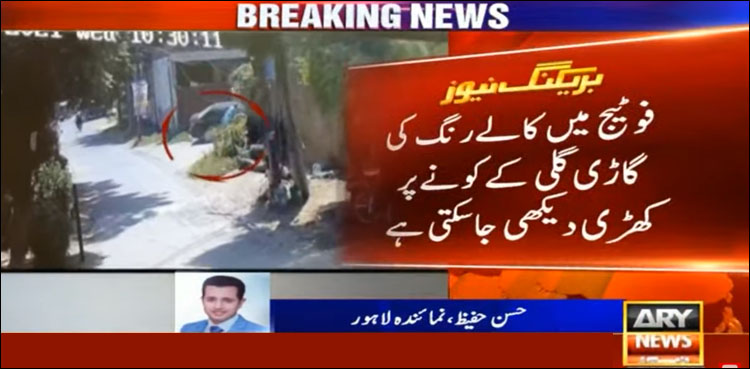 اے آر وائی نیوز کے مطابق دھماکے سے قبل سامنے آنے والی فوٹیج میں دیکھا جاسکتا ہے کہ کالے رنگ کی گاڑی گلی کے کونے پر کھڑی ہے۔