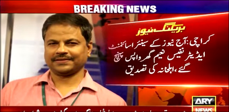 تفصیلات کے مطاق کراچی کے علاقے ناظم آباد سے لاپتا ہونے والے آج نیوز کے اسائنمنٹ ایڈیٹر نفیس نعیم گھر واپس پہنچ گئے ہیں۔