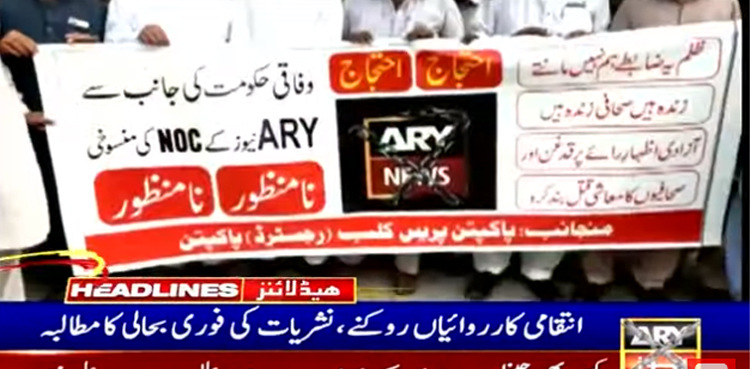صحافتی تنظیمیں حکومت سے انتقامی کارروائیاں بند کرنے اور اےآروائی نیوز کی نشریات فوری بحال کرنے کا مطالبہ کررہی ہے۔