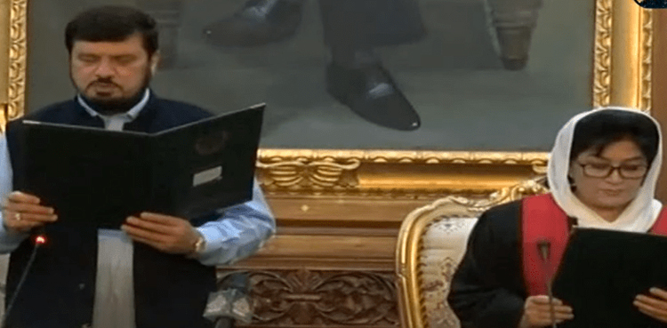 تقریب میں جسٹس مسرت ہلالی نے چیف جسٹس کےعہدے کا حلف اٹھایا ،گورنرخیبرپختونخوا حاجی غلام علی نے نئی چیف جسٹس سےحلف لیا۔