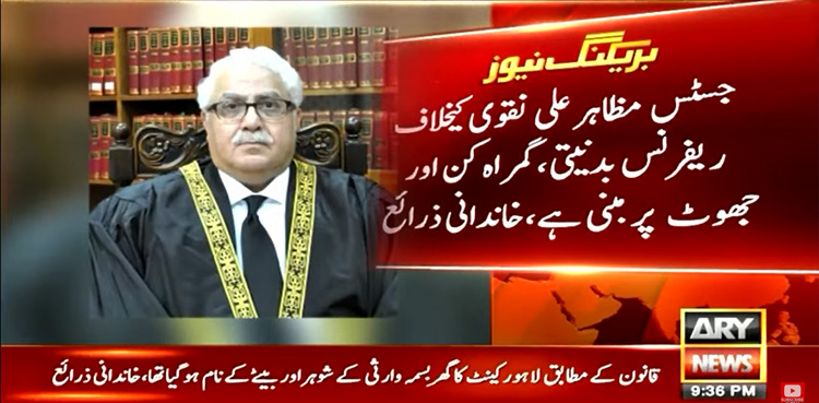 مزید پڑھیں : جسٹس مظاہر علی نقوی کیخلاف سپریم جوڈیشل کونسل میں ریفرنس