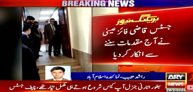 یہ بھی پڑھیں: بینچ کی تبدیلی پر جسٹس قاضی فائز عیسیٰ نے سماعت روک دی