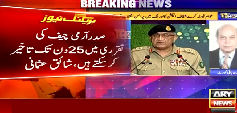 جسٹس (ر) شائق عثمانی نے کہا ہے کہ صدر مملکت آرمی چیف کی تقرری کی سمری اپنے پاس رکھ سکتے اور اس میں 25 دن تک تاخیر کر سکتے ہیں۔