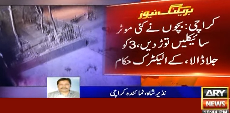 کےالیکٹرک حکام کے مطابق بچوں نےکئی موٹرسائیکلیں توڑ دیں اور 3 کو جلا دیا۔ احتجاج میں نقصان کاشکارموٹرسائیکلیں ملازمین کی ہیں۔
