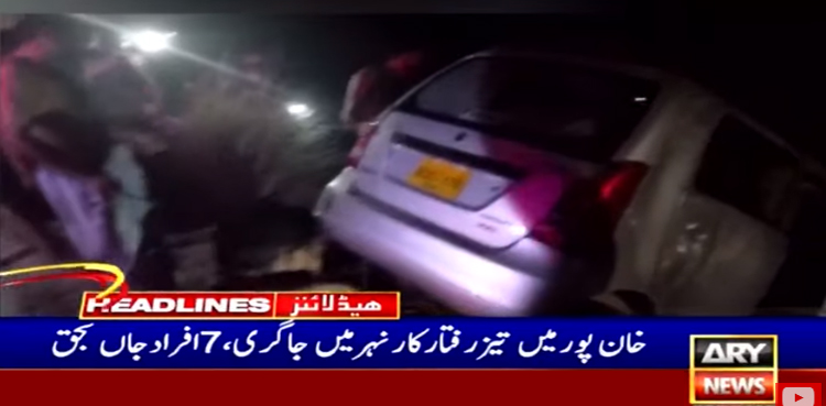 خانپور: رحیم یار خان کی تحصیل خانپور میں کار نہر میں جاگری جس کے نتیجے میں ایک ہی خاندان کے 7 افراد جاں بحق ہوگئے۔