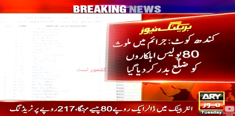 اسی تناظر میں اسی سے زائد پولیس اہلکاروں کو ضلع بدر کرنے کا فیصلہ کیا گیا ہے۔