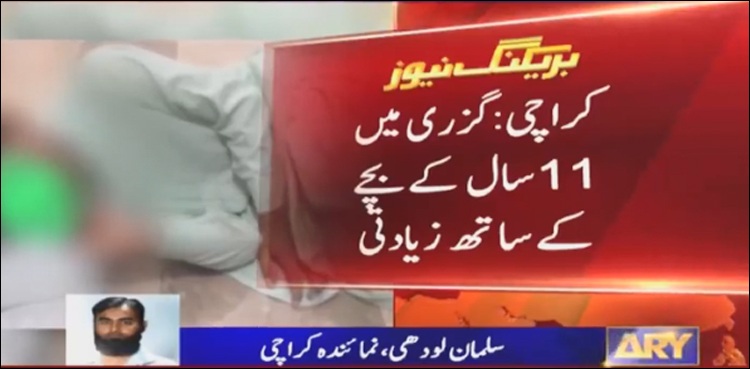 نمائندہ اے آر وائی نیوز کے مطابق کراچی کے علاقے کلفٹن میں واقع گزری میں موبائل شاپ پر کام کرنے والے گیارہ سالہ بچے کو دکاندار نے زیادتی کا نشانہ بنایا۔