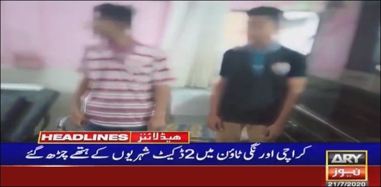 ادھر کراچی کے علاقے اورنگی ٹاؤن میں خلیل مارکیٹ کے قریب 2 کم عمر ڈکیت شہریوں کے ہتھے چڑھ گئے، پولیس اہلکاروں ںے دونوں ڈکیتوں کو مشتعل شہریوں سے بچا کر حراست میں لے لیا۔