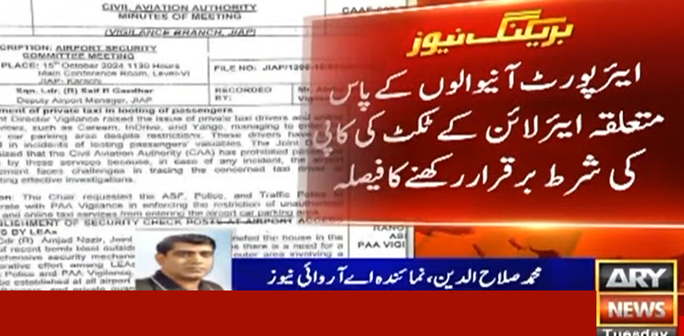جناح انٹرنیشنل ایئرپورٹ پر سیکیورٹی کے سخت اقدامات تجویز کر دیئے گئے۔ پرائیویٹ ٹیکسی کمپنیز کے ڈرائیورز اور گاڑیوں کو کراچی ایئرپورٹ کی حدود میں داخلے کی اجازت نہیں ہوگی۔