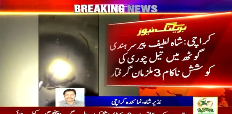 اے آر وائی نیوز کے مطابق پولیس نے کراچی کے علاقے شاہ لطیف پیر سر ہندی گوٹھ میں تیل چوری کی ایک اور کوشش کو ناکام بناتے ہوئے 3 ملزمان کو گرفتار کر لیا۔