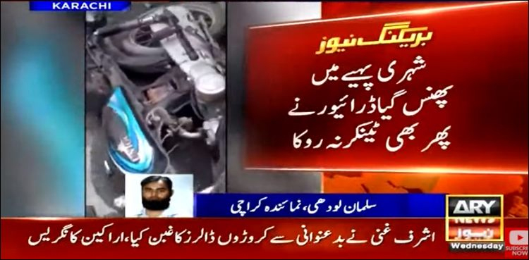 کراچی میں بے قابو ٹینکر نے ایک اور شہری کی زندگی کا چراغ گل کردیا۔