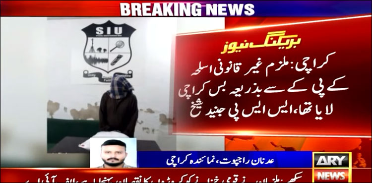 گرفتار ملزم اسلحہ کی اسمگلنگ کے دوران خود کو حساس ادارے کا افسر ظاہر کر رہا تھا، ملزم غیر قانونی اسلحہ کے پی کے سے بذریعہ بس کراچی لایا تھا۔