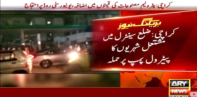 اے آر وائی نیوز کے مطابق کراچی کے علاقے ضلع سینٹرل پرانی سبزی منڈی کے قریب شہریوں نے پیٹرول نہ دینے پر پمپ پر حملہ کردیا۔
