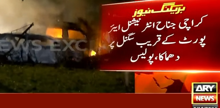 فوری طور پر پولیس نے دھماکے کی نوعیت سے متعلق نہیں بتایا تاہم عینی شاہدین نے نمائندہ اے آر وائی نیوز کو بتایا کہ ایئرپورٹ سگنل پر آئل ٹینکر میں دھماکا ہوا ہے۔