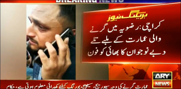 کراچی: شہر قائد کے علاقے رضویہ سوسائٹی میں منہدم ہونے والی عمارت کے ملبے تلے دبنے والے متاثرہ شخص کا بھائی ٹیلی فون پر نوجوان کو تسلیاں دیتا رہا۔