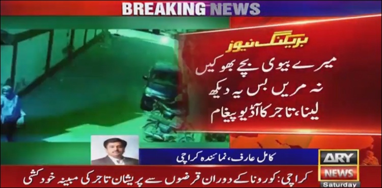 ذرائع کے مطابق تاجر نے مرنے قبل اپنے آڈیو پیغام میں کہا کہ ’دل برداشتہ ہوں، میرے لیے کسی نے بہت مسائل پیدا کردئیے ہیں، میرے بیوی بچے بھوکیں نہ مریں بس یہ دیکھ لینا۔‘