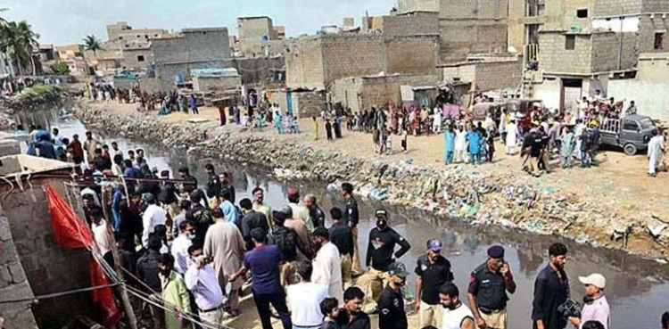 کراچی میں کیفے پیالہ ہوٹل کے قریب تیز رفتار کار بے قابو ہو کر گجر نالے میں گر گئی۔