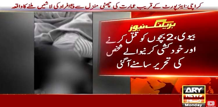کراچی کے علاقے ایئرپورٹ میں بیوی اور تین بچوں کو قتل کرکے خودکشی کرنے والے شخص کی تحریر سامنے آگئی۔