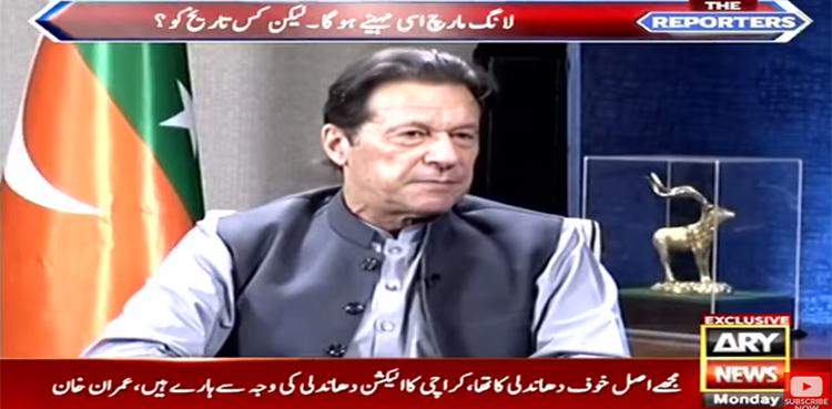 عمران خان نے کہا کہ مجھےاصل خوف دھاندلی کا تھا کراچی کاالیکشن دھاندلی کی وجہ سےہارےہیں کراچی میں اس لیول کی دھاندلی کی گئی اس لیےہم الیکشن ہارے، مگر عوام نےاپنی رائےدے دی ہے دوسری مرتبہ عوام اپنی رائے دے رہے ہیں۔