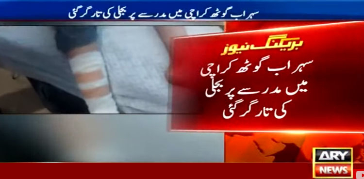 اے آر وائی نیوز کے مطابق واقعہ کراچی کے علاقے سہراب گوٹھ مچھر کالونی میں مدرسے  پر بجلی کے تار گرے جس کی زد میں بچے آگئے۔