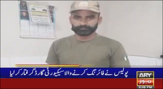 زخمی نوجوان کے مطابق گن مین نے اسلحے سے لوگوں کو خوفزدہ کرنا چاہا اور پھر فائرنگ کی، ایک گولی میرے پاؤں میں لگی، پولیس حکام کا کہنا ہے کہ فائرنگ میں ملوث گارڈ کو گرفتار کرلیا گیا ہے۔