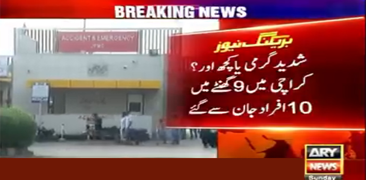 کراچی میں شدید گرمی کے دوران چند گھنٹوں میں 10 افراد پرُاسرار طور پر جاں بحق ہو گئے۔ پوسٹ مارٹم اور میڈیکل رپورٹ کے بغیر لاشیں سردخانے منتقل کر دی گئیں۔