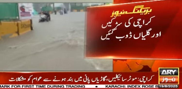 کراچی میں صبح سے جاری طوفانی بارشوں سے کئی علاقے ڈوب گئے۔ شہر میں اربن فلڈنگ کی صورتحال پیدا ہو گئی ہے۔ شارع فیصل پر گاڑیاں پانی میں تیرنے لگی ہیں جب کہ یونیورسٹی روڈ، اولڈسٹی ایریا، صدر سمیت مختلف علاقوں میں پانی جمع ہو گیا ہے۔