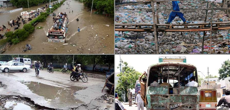 پانی اور بجلی کا بحران بن چکا ہے کراچی کی پہچان۔ ٹوٹی سڑکیں اوران پر پڑے بڑے بڑے گڑھے گاڑیوں اور انسانوں کے لیے بن چکے ہیں وبال جان۔