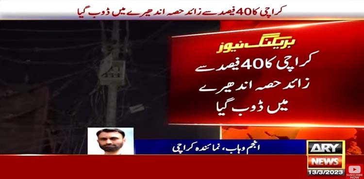 کراچی کے بیشتر علاقے اندھیرے میں ڈوب گئے