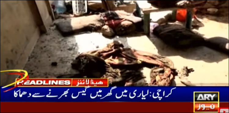 کراچی کے علاقے لیاری میں گھر میں گیس بھر جانے سے دھماکا ہوگیا جس کے نتیجے میں ایک شخص جاں بحق خاتون اور بچوں سمیت 7 افراد زخمی ہوگئے۔