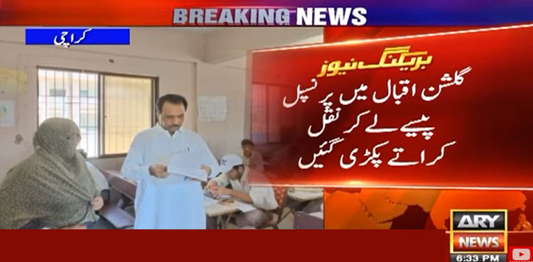 کراچی کے علاقے گلشن اقبال میں پرنسپل پیسے لے کر نقل کرواتے ہوئے پکڑی گئی۔