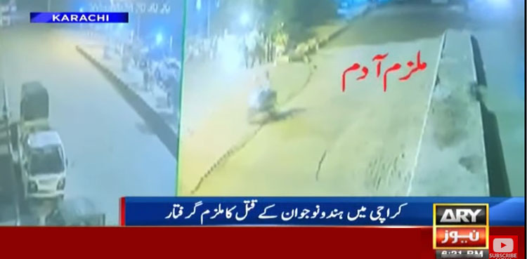 اے آر وائی نیوز کی رپورٹ کے مطابق کراچی کے علاقے کلفٹن بلاک ون میں 29 مارچ کو ہندو نوجوان دیپک کو فائرنگ کرکے قتل کردیا گیا تھا پولیس نے ملزم کو سی سی ٹی وی فوٹیج کی مدد سے گرفتار کیا۔