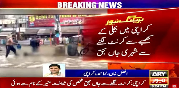 ریسکیو ذرائع کے مطابق متوفی بارش کے پانی سے بچنے کے لئے فٹ پاتھ پر لگے کھمبے کا سہارا لیا تو اس کرنٹ نے جکڑ لیا، موقع پر موجود افراد نے شہری کو بچانے کی بہت کوشش کی مگر وہ جانبر نہ ہوسکا۔